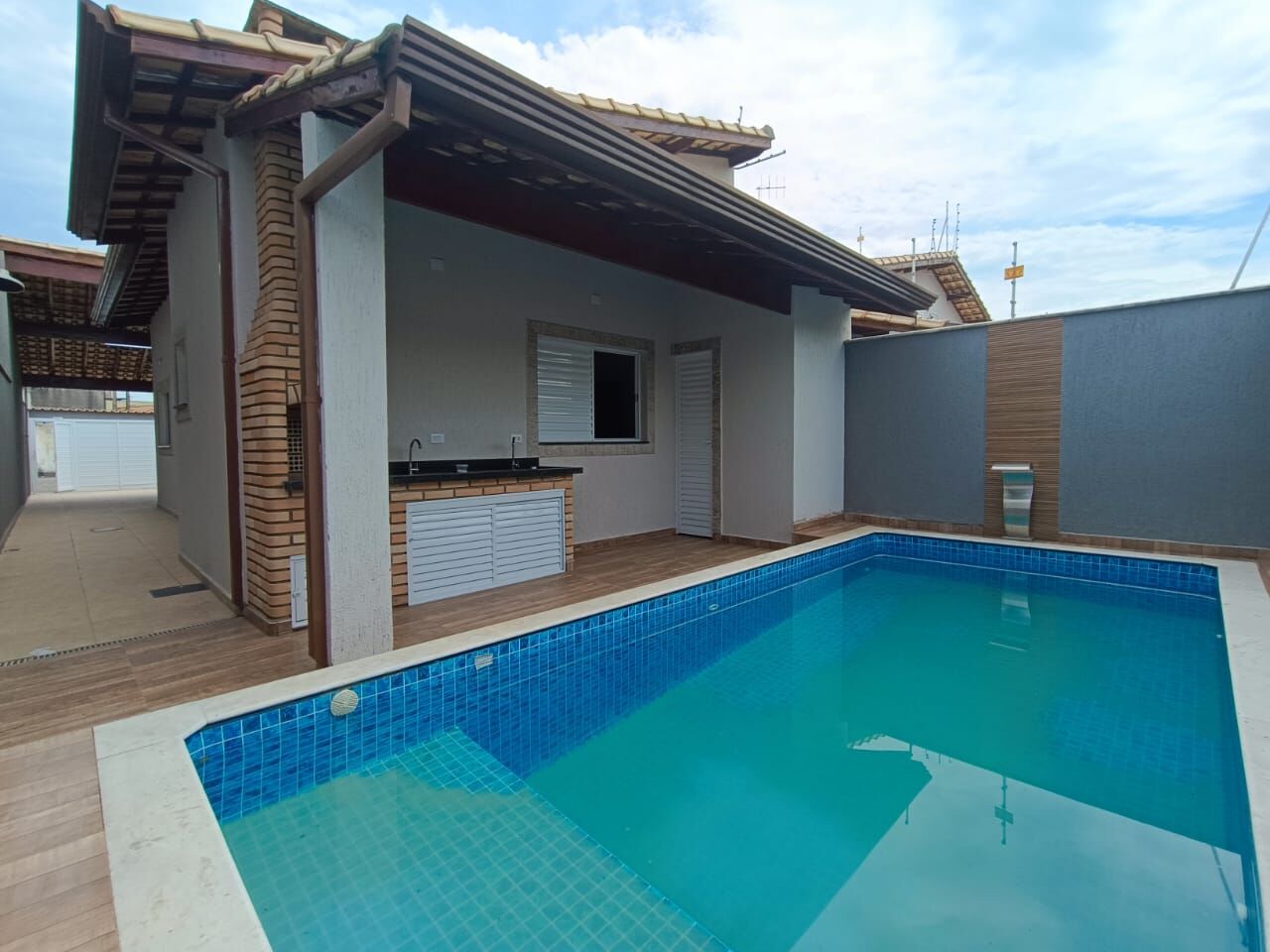 Casa com3 quartos, sendo 1 suíte, piscina e área gourmet, à 500m da praia